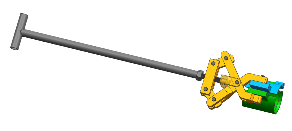 針對(duì)問題點(diǎn),一款小巧實(shí)用的落輥工具的圖紙?jiān)谥x俊君的努力下應(yīng)運(yùn)而出,工具在設(shè)計(jì)時(shí)充分考慮小巧輕便、夾持力強(qiáng)、快速夾緊松開、在拖拽過程中能將部分拉力轉(zhuǎn)化為夾持力等因素。經(jīng)努力攻關(guān),手持式抓輥器于2023年2月投入使用,使落輥處理提升了10分鐘以上,勞動(dòng)強(qiáng)度降低,安全性提升。經(jīng)申請(qǐng),該小工具獲國(guó)家實(shí)用新型專利。