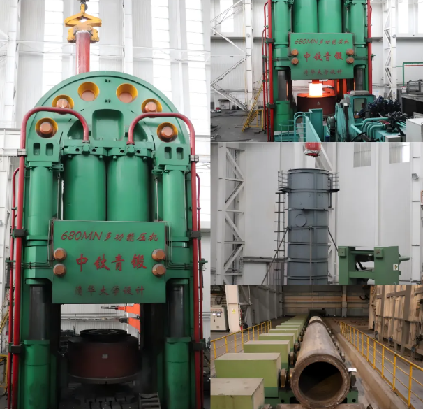 2024 年 11 月 12 日上午,在中鈦青鍛 680MN 多功能壓機(jī)平臺(tái)上一根紅彤彤的超大尺寸316LN不銹鋼無(wú)縫管材徐徐吊出,然后快速進(jìn)入冷卻水塔中,現(xiàn)場(chǎng)瞬間翻滾出大量的水汽。標(biāo)志著本次超大口徑316LN不銹鋼無(wú)縫管材試制成功,據(jù)悉,該管材直徑約1000mm,壁厚僅為90mm左右,長(zhǎng)度達(dá)到6m以上,在我國(guó)不銹鋼擠壓管材方面達(dá)到領(lǐng)先水平。得益于中鈦青鍛良好的設(shè)備精度和深厚的技術(shù)儲(chǔ)備,使得中鈦青鍛在不銹鋼管材擠壓方面具有明顯的質(zhì)量和成本優(yōu)勢(shì)。