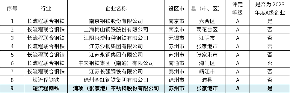 從《公示》中獲悉,包括浦項(xiàng)(張家港)不銹鋼股份有限公司(簡(jiǎn)稱PZSS)在內(nèi)的9家鋼企為重污染天氣重點(diǎn)行業(yè)績(jī)效評(píng)價(jià)A級(jí)企業(yè)。